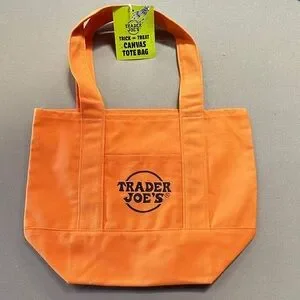 Trader Joe’s recently dropped Halloween canvas tote bag.Bright orange canvas tote bag with Trader Joe's logo in black. Perfect for shopping or everyday use.