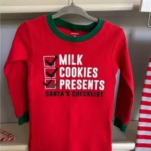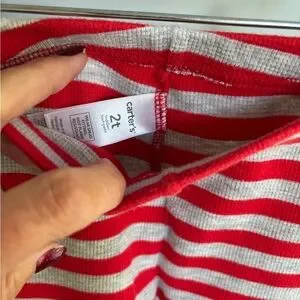 Bright red top with fun checklist design. Striped gray and red pants. Ideal for cozy nights. Like new! Make a bundle and save!