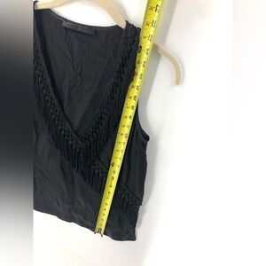 Jenni Kayne 100% Silk Fringe Blouse Sleeveless Top Shell Black Shirt Size XS