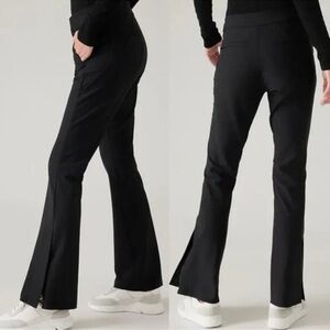 Athleta Womens Stellar Flare Trouser Pants Size 2 Petite Black Zip Leg Stretch