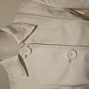 Chic cream trench coat with button closure. Tailored fit with classic collar. Ideal for stylish layering.