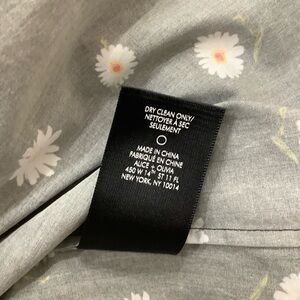 Stylish black fabric adorned with white and yellow flowers. Perfect for a chic look.