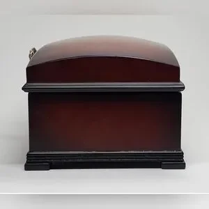 Elegant Bombay Valet Wooden Jewelry Box with a rich, dark finish and a curved lid.