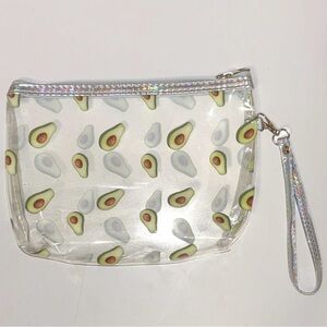 NEW - Clear Avocado Print Wristlet / Cosmetic Makeup Bag Case w Hologram Piping