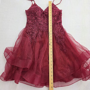 Pageant May Queen Beaded Tulle Party Dress Womenβs 4 Burgundy Fit & Flare Formal
