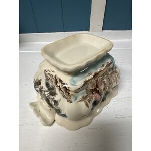 Vintage Covered Dish With Lid Scenic Design Cream Ceramic Serving Bowl Tureen