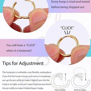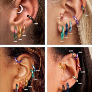 Features: This set includes small hoop earrings in various sizes (6mm to 14mm inner diameter), perfect for multiple piercings or mix-and-match styles. Made of durable, hypoallergenic stainless steel — nickel and lead free — so they’re comfy for sensitive ears. Classic hinged design makes them super easy to take on and off, whether you’re heading to the office, out with friends, or adding a pop of color to your everyday look.