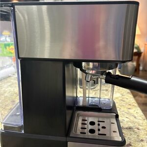 Enhance your coffee experience with this professional black and silver coffee machine. Perfect for any home kitchen, it combines style and functionality.