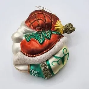 Celebrate the holidays with this charming Santa Claus ornament. Featuring a colorful design with green, blue, and brown accents, this piece adds a festive touch to any home decor.
