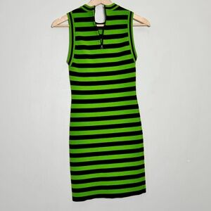 Alice + Olivia Landi Striped Bodycon Dress in Parrot Black and Lemon Grass Green Sz Small