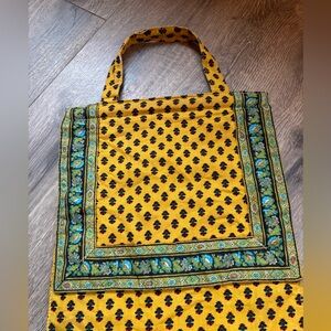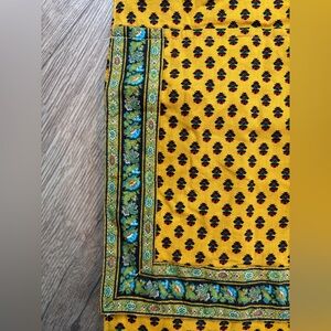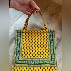 Add a touch of rustic French charm to your home with this vintage Provençal fabric hanging organizer. Made from quilted cotton in a rich mustard yellow with classic floral motifs and decorative green/blue borders, this piece is both useful and stylish.