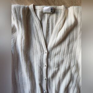 Cream 70s Rabbit Fur Angora Soft Puff Sleeve Cardigan Pearl Button Vintage Franc