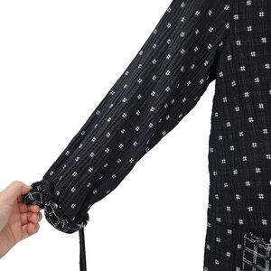 Habitat Slub Cotton Fringe Printed Top Black & White Long Sleeve Pockets Crew Neck Relaxed Fit Oversized Lightweight Women’s