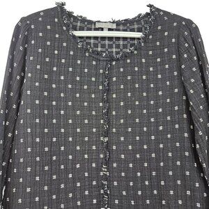 Habitat Slub Cotton Fringe Top Black Women’s Size XS Long Sleeve Boxy Lagenlook