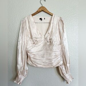 NWOT Stunning Option Ivory Balloon Sleeve Ruched Top