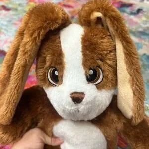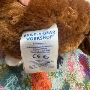Charming plush bunny from Build-A-Bear. Soft brown and white fur. Perfect for cuddles and play.