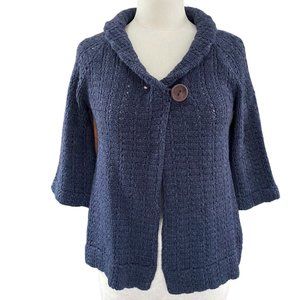 -cardigan with single button closure at top
