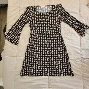 Boden Miriam Jersey Tunic Dress Midi Bell Sleeve Black Floral