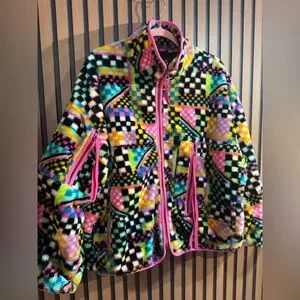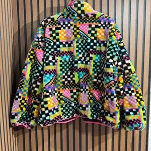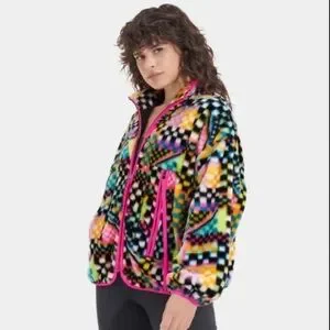 UGG fleece jacket with vibrant checkered design. Soft and warm.