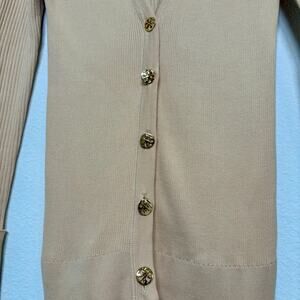 Tory Burch Simone Cardigan Gold Small V-neck Button Front Ribbed Cuffed Sleeves