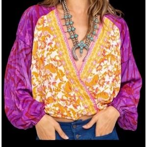 New! Free People Cruisin Together Print Top size Medium Boho Chic Purple M $108