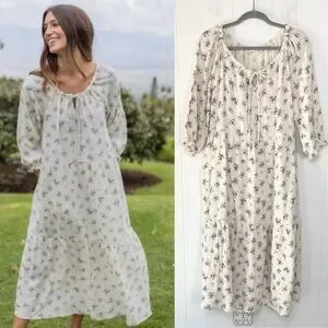 Embrace elegance with this beautiful cream dress featuring a delicate floral print. Perfect for any occasion.