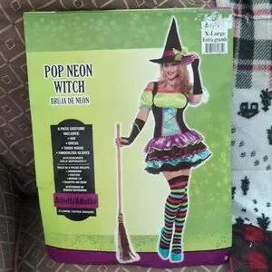 Brand New 6 piece costume includes Hat, dress, thigh highs, fingerless gloved