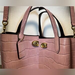 Coach Willow Tote Ice Purple crocodile embossed leather crossbody purse