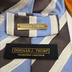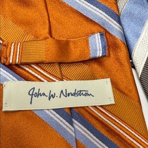 Set of four men's ties featuring striped and polka dot patterns. Includes red, blue, orange, and gray colors. Donald Trump Brand and John Nordstrom