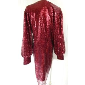 Item: Women's Red Sequin Faux Wrap Puff Sleeve Dress