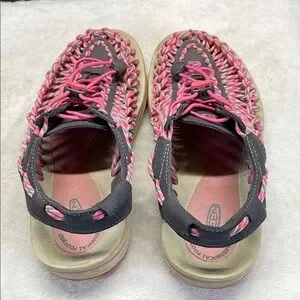 Step into comfort and style with Keen's pink and gray sandals, perfect for any adventure. These sandals offer a unique blend of vibrant colors and durable design, making them ideal for both casual outings and active pursuits. Enjoy the freedom and support these sandals provide, ensuring your feet stay comfortable all day long. Excellent condition, Taking offers and willing to negotiate