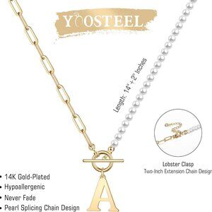 Size: 14" + 2" pearl initial necklace, 7-inch paperclip link chain + 7-inch 4mm simulated shell pearl chain. Toggle clasp and lobster clasp for versatile wear.