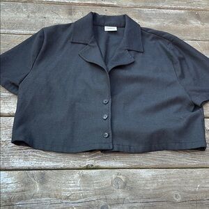 Aritzia Sunday Best Black Boxy Crop Button Down Shirt size M