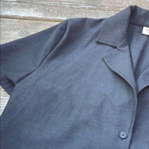 This stylish top from Aritzia features a chic boxy crop design with a notched collar, perfect for adding a modern touch to your wardrobe. The black color and buttoned front make it a versatile piece for any occasion. Size M. When laying flat pit to pit is 18.5”, length is 16.5”. In excellent condition