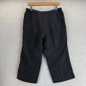 J. Jill Womens Black Linen Pants Pull On Elastic Waist Capri Size Small Petite