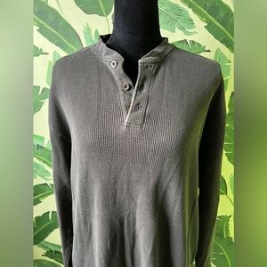 Henley Top Oversized Gray Waffle Thermal Long Sleeve men XL