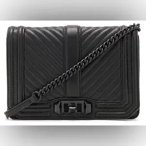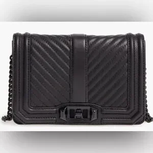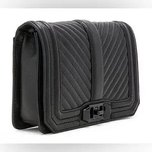 REBECCA MINKOFF Small Love Crossbody Chevron Quilted Leather Crossbody (Black)