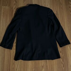 Elegant classic Anne Klein black blazer. Features glitter cuffs. Double-breasted design. Perfect for formal occasions.