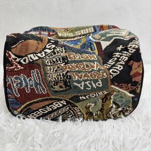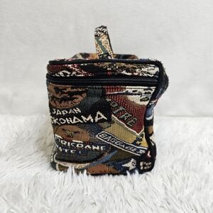 Vintage tapestry cosmetic travel bag.