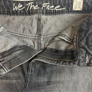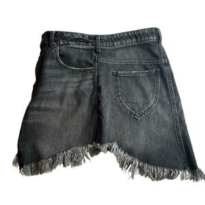 We The Free skirt, black grey denim skirt, cotton fringe skirt, asymmetrical denim skirt, size 28 We The Free, Free People skirt, edgy fringe skirt, black grey asymmetrical skirt, cotton denim mini skirt, We The Free asymmetrical hem, boho denim skirt, raw hem fringe skirt, Free People size 28 skirt, black grey cotton skirt, festival style denim skirt, We The Free fringe mini, asymmetrical cut skirt, distressed denim skirt, Free People edgy skirt, black grey boho skirt.