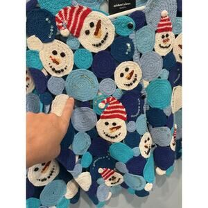 Vtg Michael Simon Embroidered Cardigan Sweater Crochet Christmas Snowman Novelty