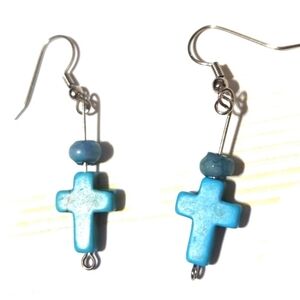 silver turquoise dangle cross earrings vintage