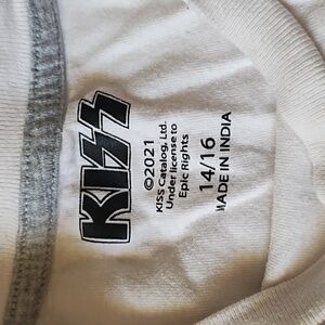 Vintage effect Kiss logo with colorful graphics. Soft and comfortable fabric. Ideal for young rock fans.