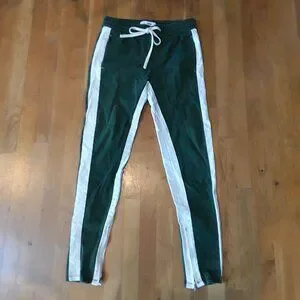 Unisex Dark Green & White Ankle Zip Slim Fit Drawtring Track Pants