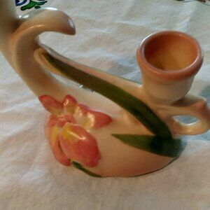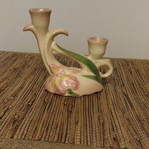 Vintage 1930s Camark Pottery Twin Candle Holder – Pink Iris Floral Art Deco US