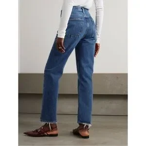 These Agolde 90’s Pinch Waist Jeans deliver timeless vintage-inspired style with a modern, flattering fit. Designed from 100% regenerative cotton in a medium-dark denim wash, they feature the brand’s signature high-rise, straight-leg silhouette that defines the waist and elongates the leg. A cult-favorite among fashion lovers, influencers, and stylists alike.