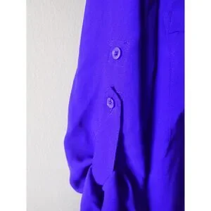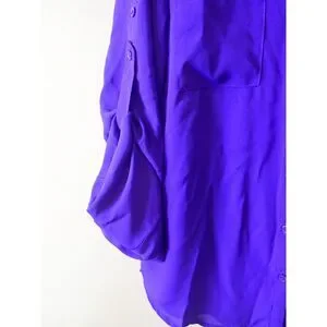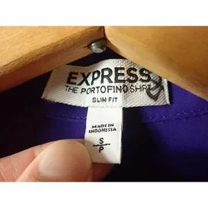Express Portfolio Shirt Blouse Slim Fit Small Petite Purple Blue Button Front