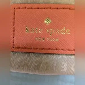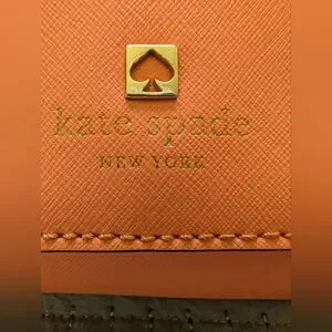 Vibrant tangerine cross body by Kate Spade. Features a chic gold emblem.