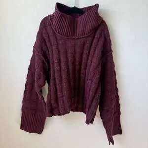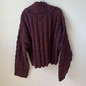 The Free People We The Free Soul Searcher Mock Neck Wine Sweater in size XS is a stylish and cozy pullover made from recycled material. Featuring a chunky-knit pattern with a mock neck and long dolman sleeves, this sweater in burgundy color is perfect for a relaxed fit. The quilted accents add a touch of texture to the oversized and cropped design, making it a versatile piece that can be dressed up or down for various occasions. Perfect for women who appreciate a blend of bohemian and classic styles in their wardrobe.