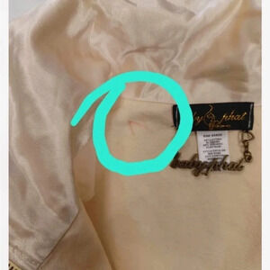 Very pale peach in color this vintage BP has long sleeves ending with silky ruffled cuffs.